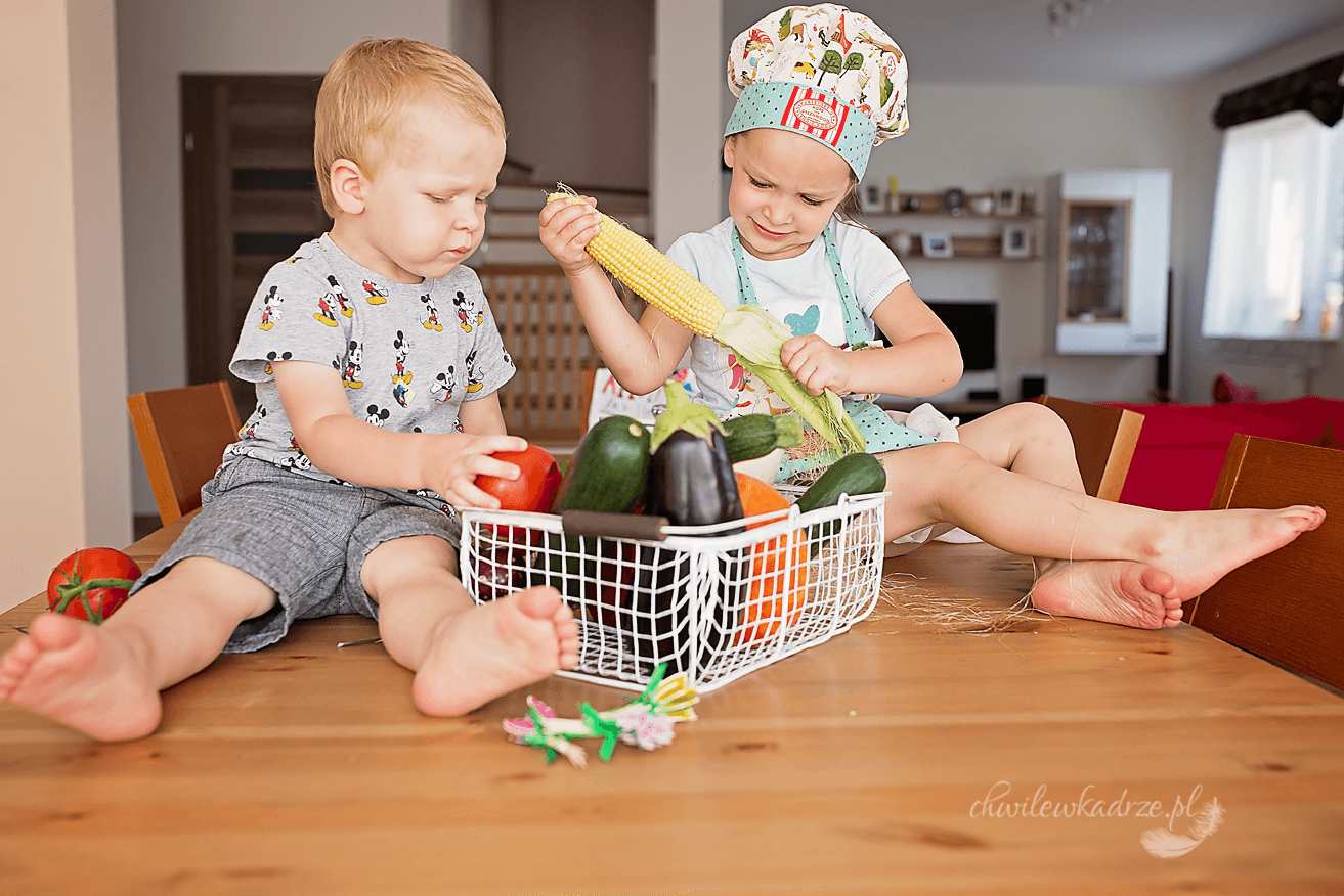 My urządzamy dzień warzyw i wówczas w ruch idą zarówno zabawkowe warzywa, jak i prawdziwe. Dzieci najlepiej uczą się właśnie przez zabawę.
